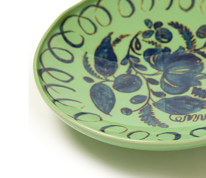 Inspired by timeless artisan craftsmanship, this vibrant stoneware set brings a bold botanical flourish to your table. Microwave and dishwasher safe, these hand-painted motifs bring a playful design which meets everyday function.  Each piece tells a story of rustic elegance and modern charm.